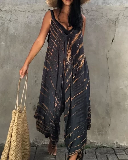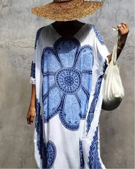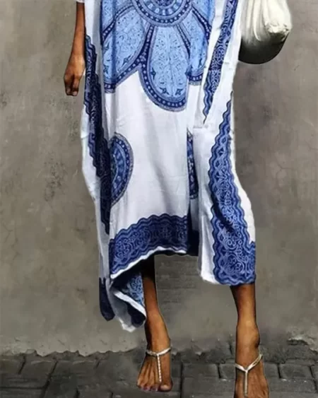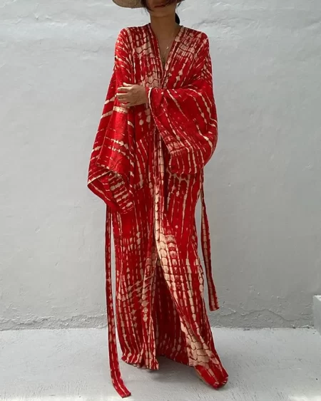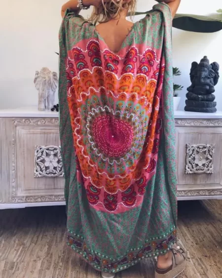 Be the first to review “Tie-Dye Print Batwing Sleeve Loose Maxi Dress”